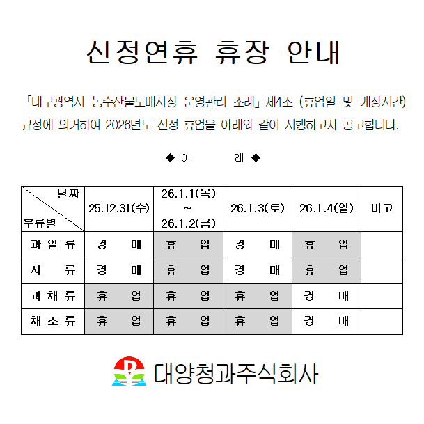 2025³â ³ó»êAµ¿ ÀçÃà¿¡ µû¸¥ °úÀÏ·ù °æ¸Å½Ã°£ º¯°æ¾È³»!